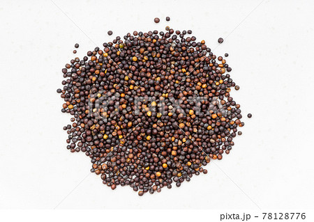 pile of whole-grain rapeseeds close up on gray