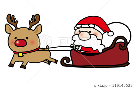 プレゼントを配りに行くサンタクロースとトナカイのクリスマスカード