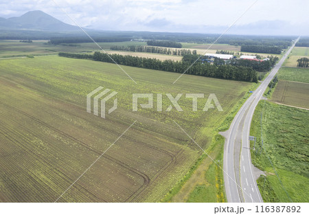 北海道 十勝平野 火山展望地(空撮)