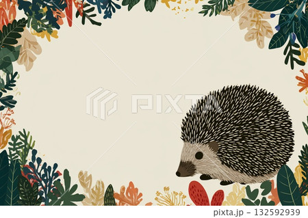 ハリネズミのイラスト背景素材,ハリネズミ,秋,ペット,動物,イラスト,メッセージカード,宣伝ポスター