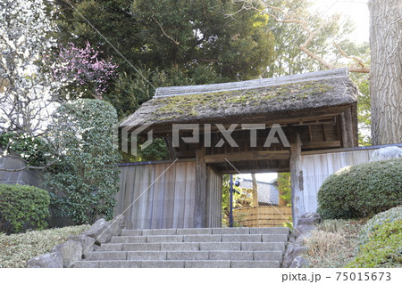 春の戸定が丘歴史公園 茅葺門(かやぶきもん)千葉県松戸市