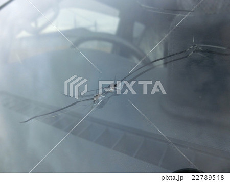石が当たって割れた車のフロントガラス