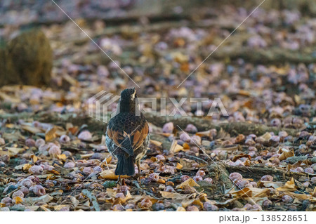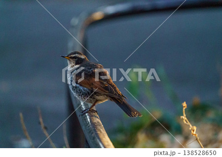 東京都心で見られるツグミ 柵にとまる野鳥の風景