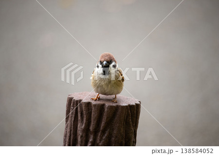 正面を向く可愛いスズメ