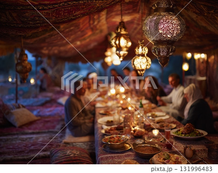 Warm Glow of Ramadan Lanterns in a Starry Evening