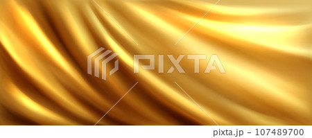 3D render beautiful folds of golden silk in full screen, like a beautiful clean fabric background like gold foil. Simple soft background with smooth folds like waves on a liquid surface.