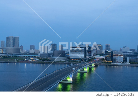 晴海側からライトアップされた豊洲大橋を望む<2024年4東京都江東区豊洲>