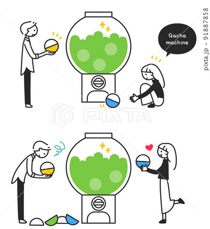 ガチャガチャマシーンを回すちまっとした人物
