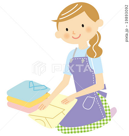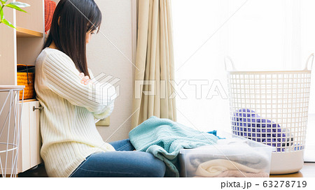家事をする女性 洗濯物 衣装ケース 洗濯カゴ