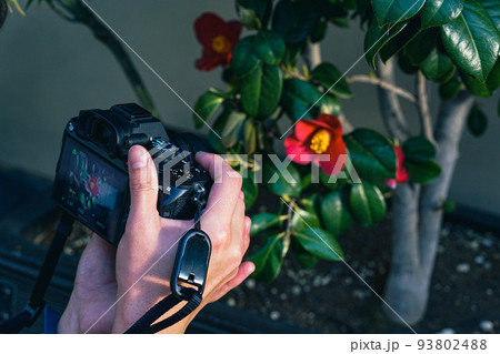 椿の花の写真を撮る人