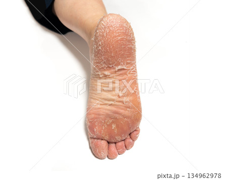 足裏の角質除去 角質ケア コピースペース(足の角質パックを使用して古い角質が剝がれた様子)