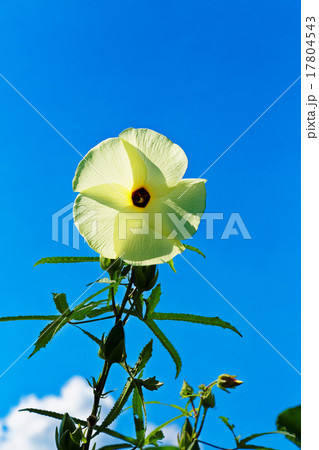 大きな黄色のとろろあおいの花と青空