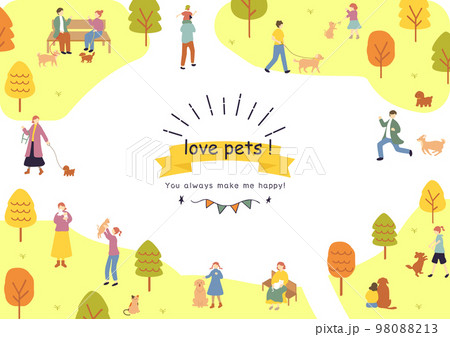 ペットとの暮らしを楽しむ人達 シームレス背景