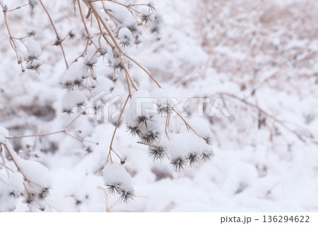 雪の重みに耐えるセンダングサ