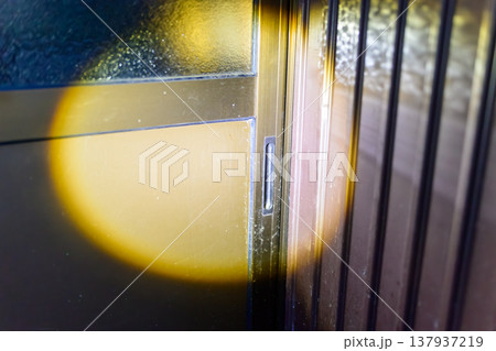 ドアの取っ手と光の反射