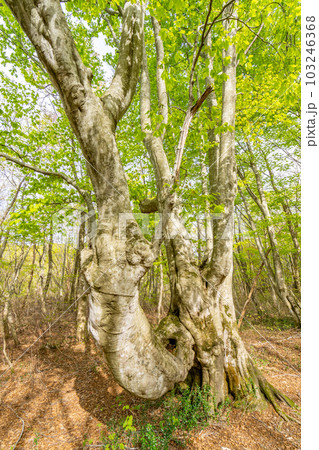 中島台・獅子ヶ鼻湿原の春 あがりこ大王 森の巨人 ブナの巨樹