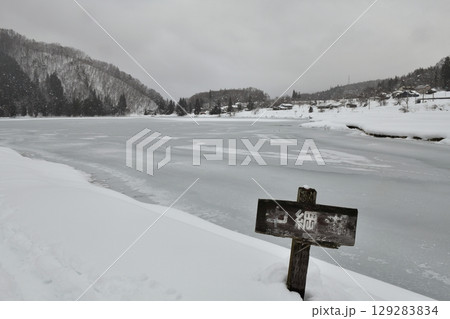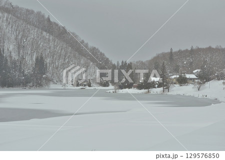 正月2日、雪が降る長野県大町市中綱(なかつな)湖を訪れる