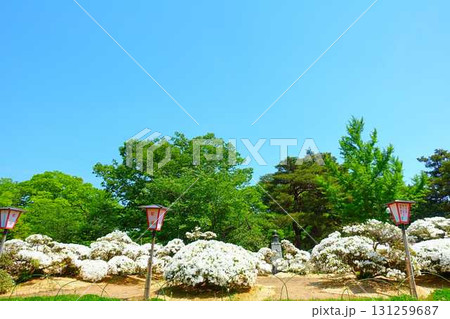 満開のつつじ ツツジ 白つつじ公園 松ヶ池公園 長井市