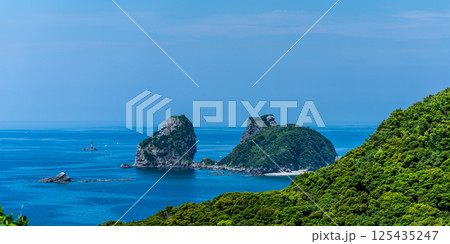 高台から見た角力灘の青い海と青い空