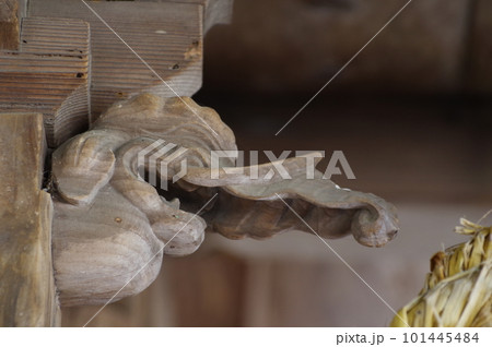 信州安曇野 有明山神社山門「裕明門」の十二支の彫刻 「巳(蛇)」