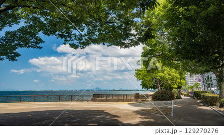 【琵琶湖の湖畔 (プロムナード)】 (高解像度版) 滋賀県大津市におの浜