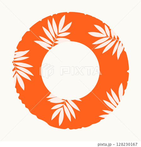 Orange swimming ring with tropical pattern. Isolated element for design. Summer, vacation, rest concept.