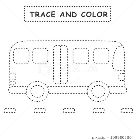 バスのなぞり書きぬりえ