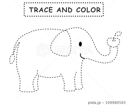 象のなぞり書きぬりえ