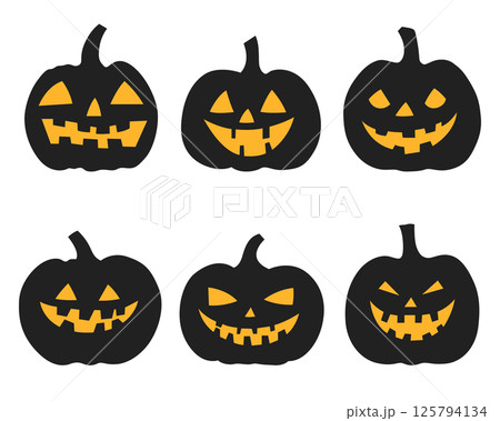 Silhouetted pumpkins with carved faces, perfect for spooky Halloween decorations and autumnal festivities. Cheerful and playful design.