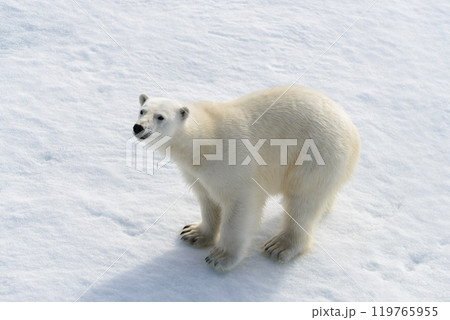 Polar bear (Ursus maritimus) on the pack ice north of Spitsbergen Island, Svalbard, Norway, Scandinavia, Europe