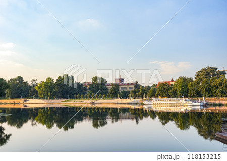 島根県松江市 白潟公園の湖岸から島根県立美術館や嫁ヶ島方面を眺める