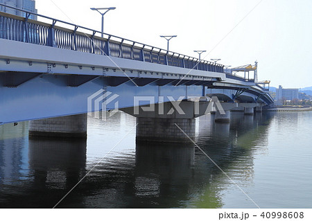 島根県松江市の宍道湖大橋南詰の遊歩道から北詰方面を見る