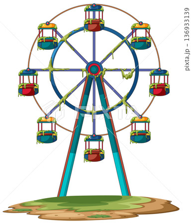 Abandoned Ferris Wheel Covered in Moss and Rust