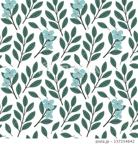 Seamless floral pattern with cute wild flower and branches. Romantic botanical design with green leaves vector illustration