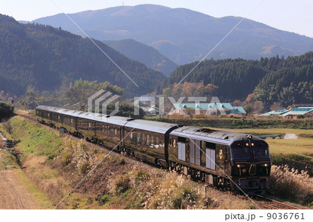 久大線の山中を行く、豪華寝台列車 ななつ星in九州