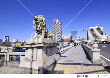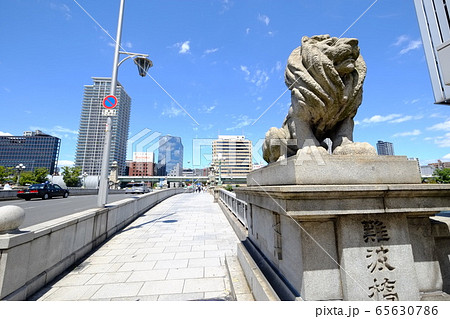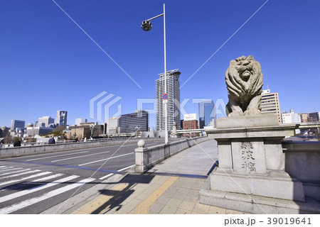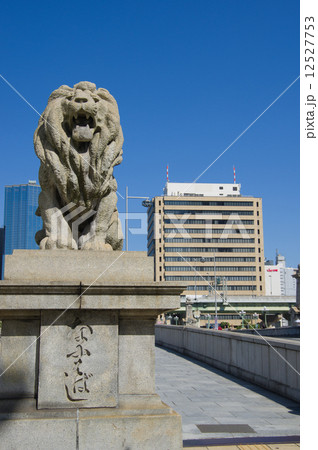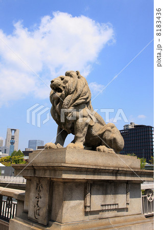 土佐堀川にかかる難波橋(ライオン橋)南詰 高欄の獅子 阿形像 大阪市中央区北浜