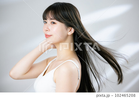ビューティー 黒髪のロングヘアーの女性