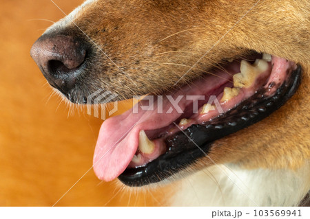Mouth of a dog open closeup