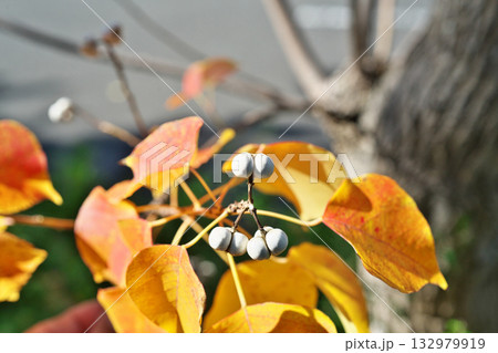 ナンキンハゼの白い実と紅葉(冬、十二月)