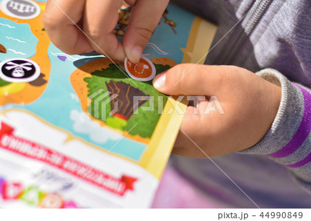 A child plays a pirate quest on a paper map