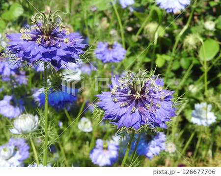満開の紫色のニゲラの花