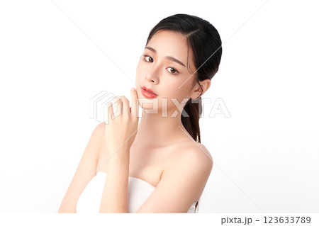 Beautiful young asian woman with clean fresh skin on white background, Face care, Facial treatment, Cosmetology, beauty and spa, Asian women portrait.