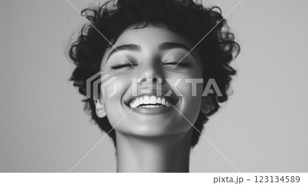 Beautiful young woman with a radiant smile and joyful expression. AI generated
