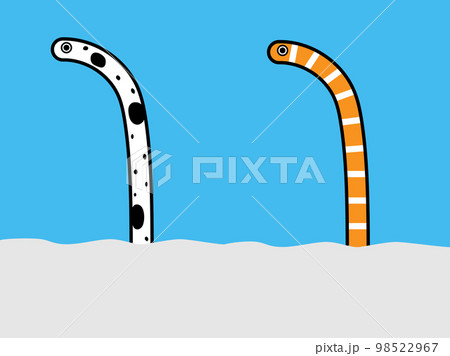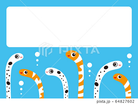 可愛いチンアナゴとニシキアナゴのイラスト 暑中お見舞いのテンプレートデザイン ベクター
