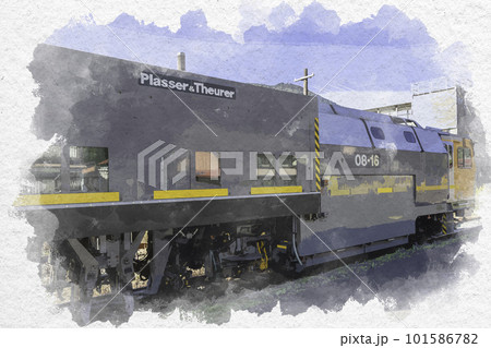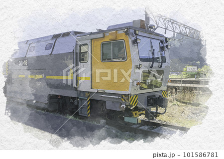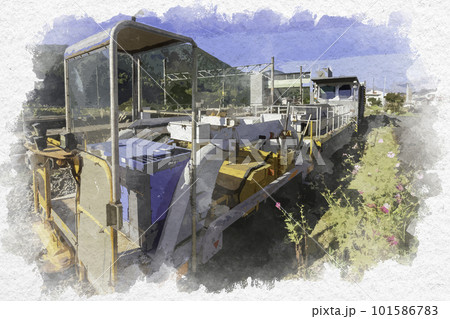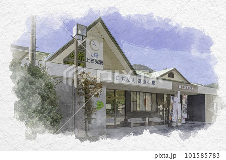 水彩画風 マルチプルタイタンパ ドクターブルー JR上石見駅 鳥取県日南町