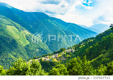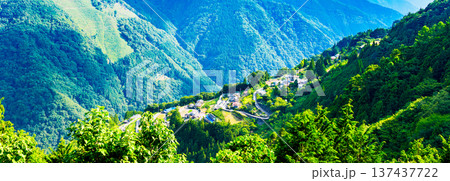 上世屋(かみせや)の棚田と農村集落(桜と新緑の季節)/世屋高原/京都府宮津市/にほんの里100選