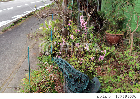 小さなピンクの花の集合・庭梅