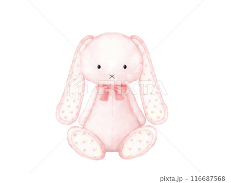 ピンクのうさぎの可愛いぬいぐるみのイラスト素材