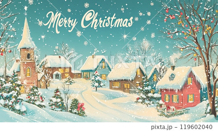 christmas paper in the vintage style, Snowy villages, vintage bold lettering, Merry Christmas