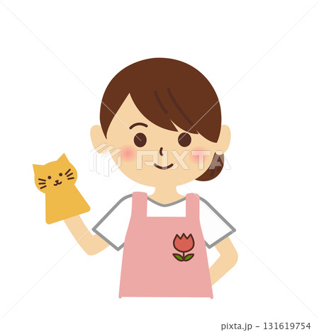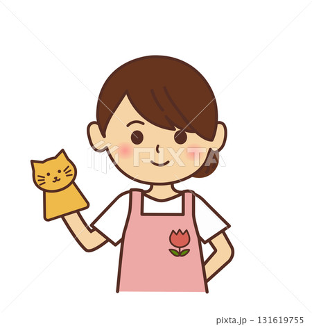 エプロンをした保育士のイラスト 保育士, 女性,ぬいぐるみ,エプロン,先生,保育園,幼稚園,上半身,